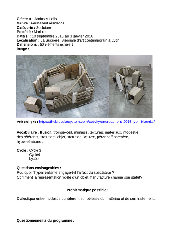 Cycle 3 : Valeur expressive de l'écart dans la représentation Cycle 4 : Rapport au réel et valeur expressive de l'écart en art ; Les images artistiques et leur rapport à la fiction, notamment la différence entre ressemblance et vraisemblance.